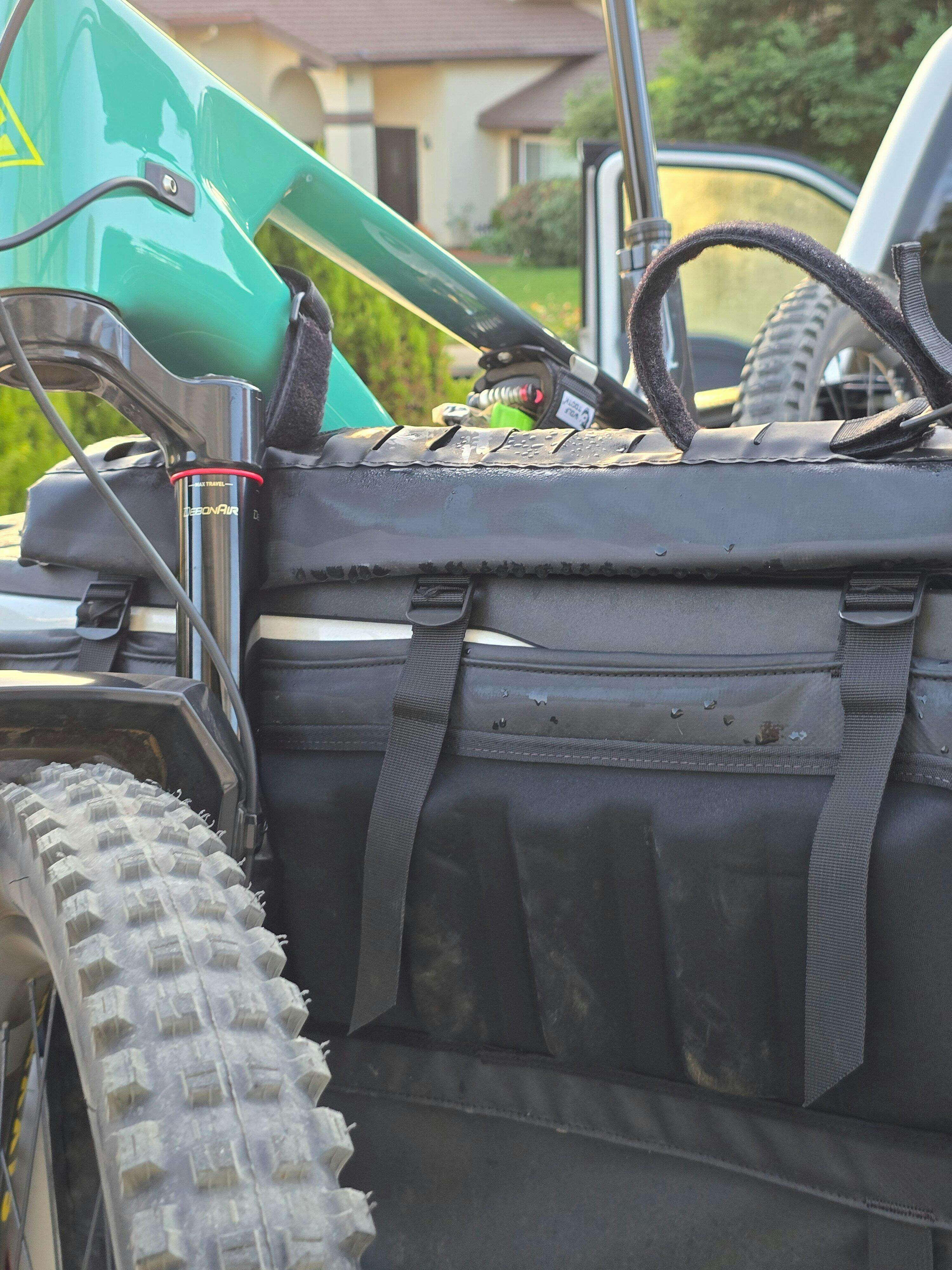 Our most adjustable and advanced tailgate pad, the Mission allows your tonneau cover to fully close and lock. A two-panel, full coverage design can adjust for almost any height of tailgate and downtube attachment points are customizable for your fleet of bikes. Durable PVC tarpaulin on the outside and a micro-brushed inner lining to keep your tailgate scratch-free.